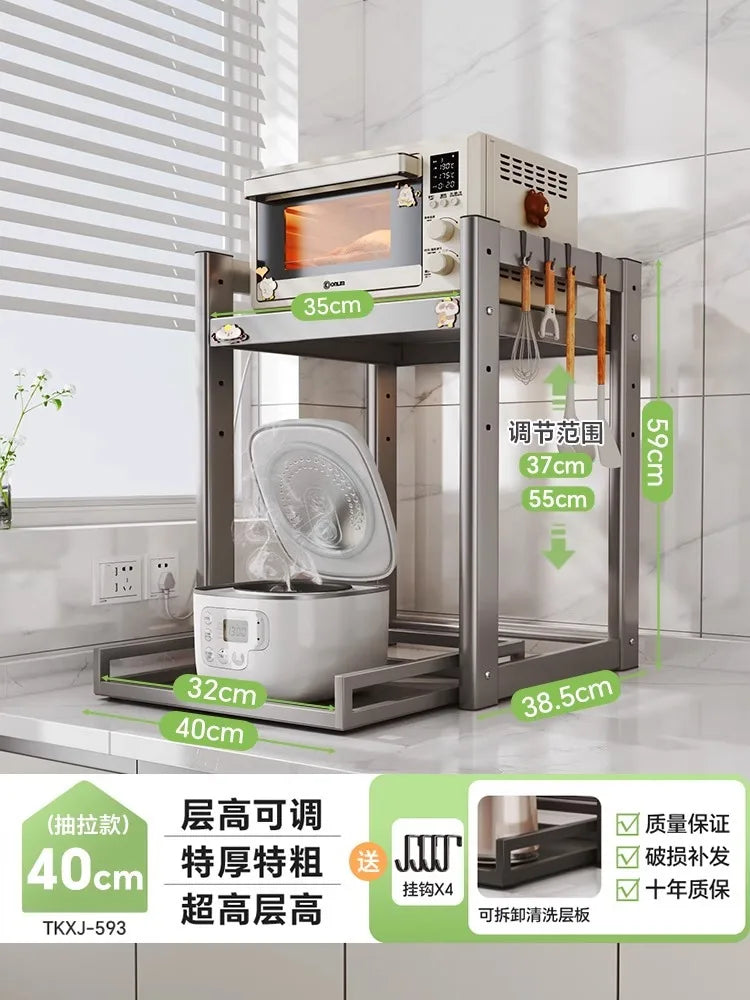 The Ermo Rice Rack is a sturdy, double-tier storage shelf designed for kitchen essentials. Made from durable carbon steel and PP, it holds rice cookers, spices, and other sundries while keeping your countertop organized. Its modern minimalist design fits seamlessly in any living room or kitchen setup.
